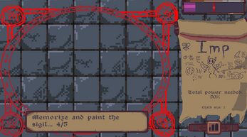 You are a summoner and want to call forth different demons in dark rituals! To perform the rituals, sigils need to be drawn. But time is short, and the visions from hell that show you the correct sigils vanish as quickly as they appear. Furthermore, the mightier the demon, the more power your ritual needs... Can you summon all of them? Or will you instead fail and... call something else entirely?